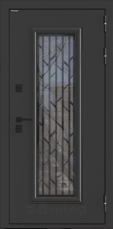 Стеклопакет 4-х камерный, тонировка стекла: снаружи Графит, внутри зеркальная серебро. Лазерная решетка внутри стеклопакета (муар черный)